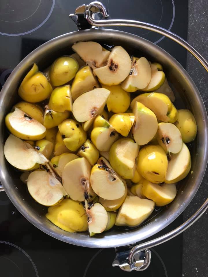 Wie kent tegenwoordig nog kweeperen? Een ouderwetse vrucht die je niet veel meer in tuinen tegenkomt, terwijl hij zo’n heerlijke geur heeft. Wat lastig om te verwerken, maar ook dit jaar kon ik het niet laten.
