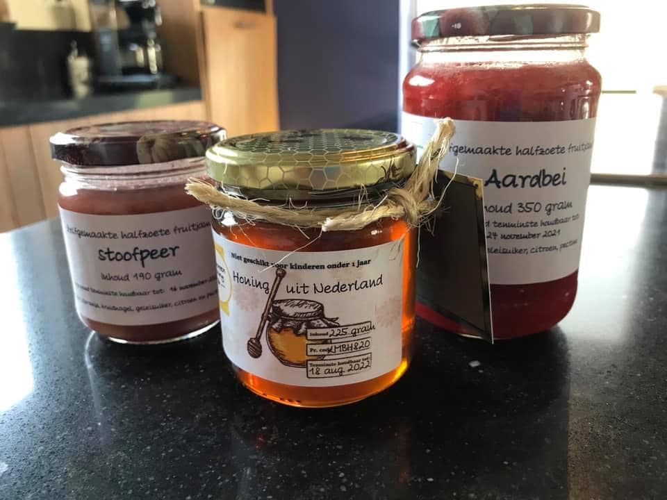 Misschien kun je deze keer eens kiezen voor een streekproduct. Ik heb verschillende jamsmaken in mijn assortiment en die kunnen ook in een klein formaat geleverd worden, net als de honing. Ook maak ik pakketjes met bijenproducten, zoals honing, waskaarsen en honingzalf. Alles eerlijk en duurzaam.